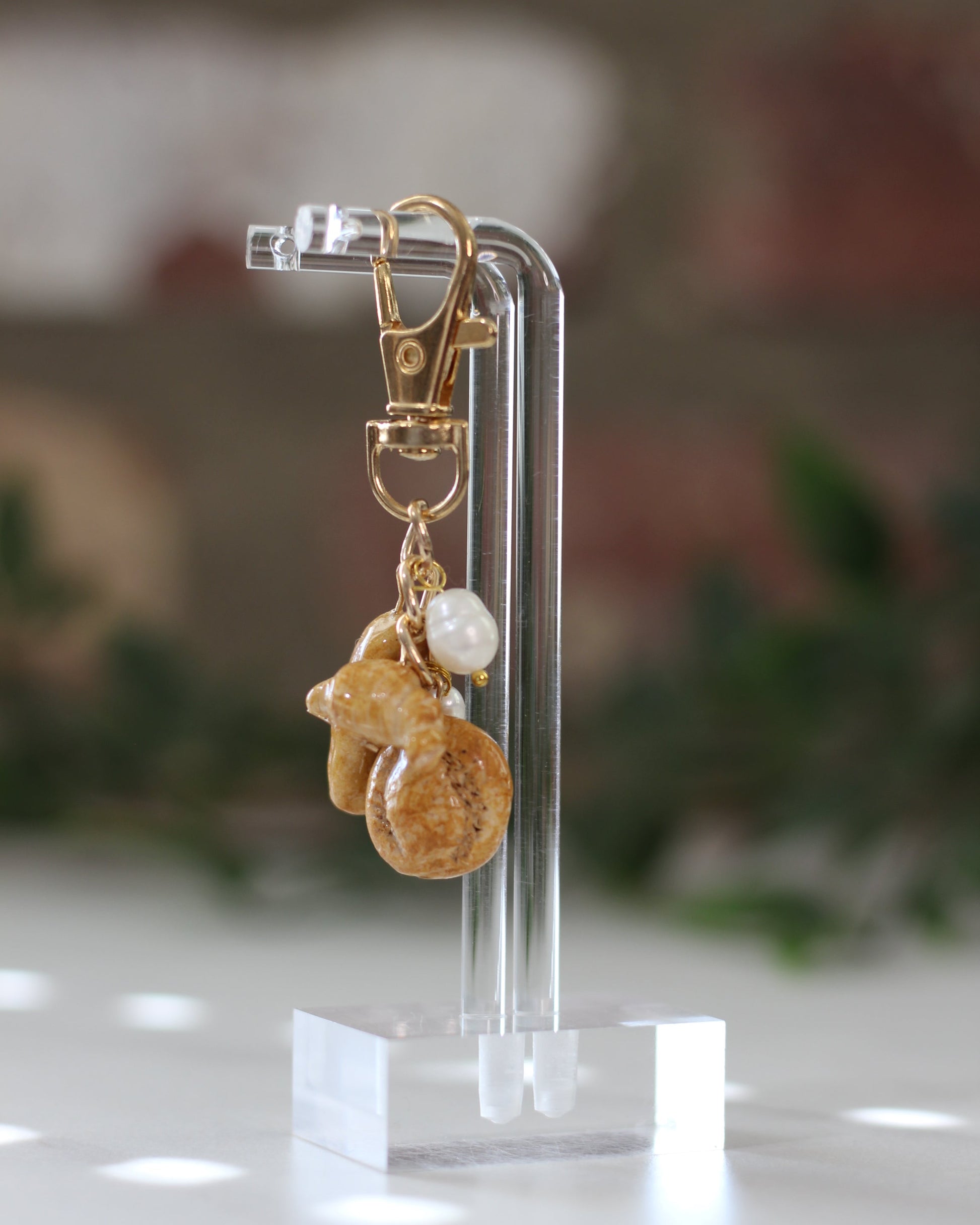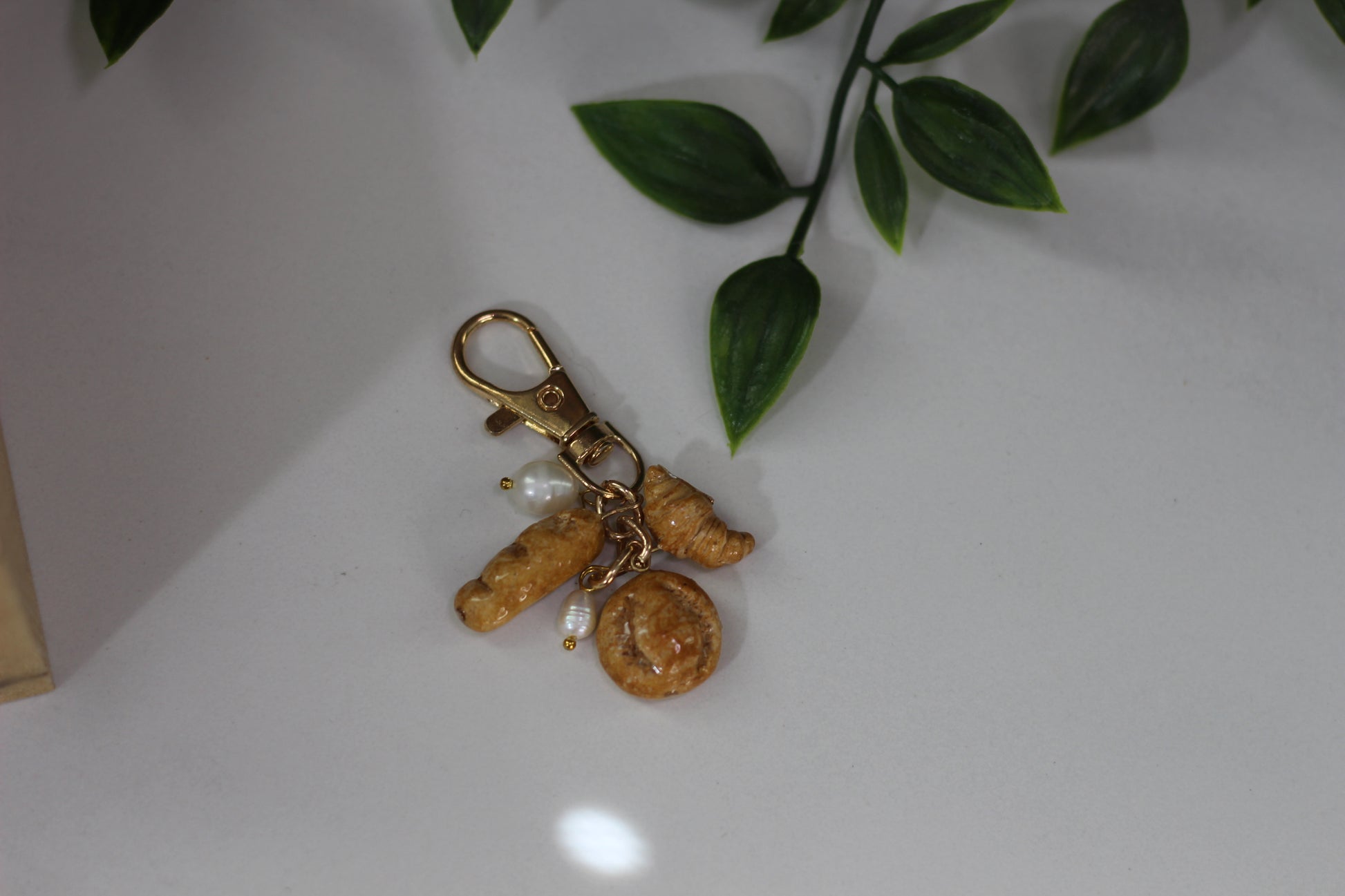 Handcrafted polymer clay bread (baguette, sourdough, croissant) keychain / bag charm.