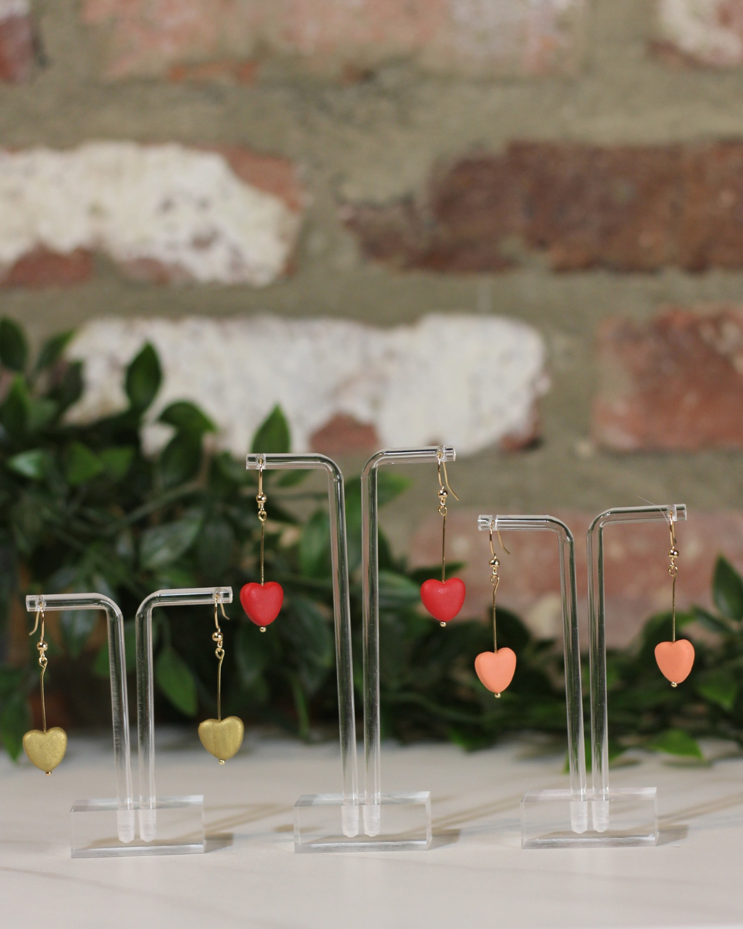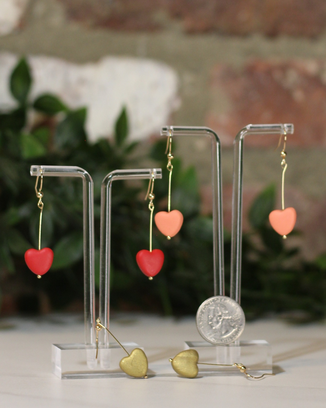 Handcrafted polymer clay heart drops.